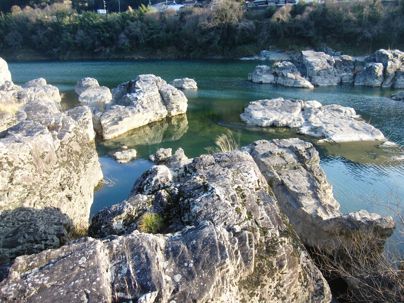 吉野川の中に、多くの奇岩が2kmにも渡って点在し、
